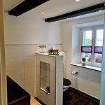 Die Badezimmer in der Ferienhaus Am Brunnen sind mit einer begehbaren Dusche und einer getrennten Toilette ausgestattet. Die Bäder verfügen auch über einen Haartrockner und Handtücher für zusätzlichen Komfort.